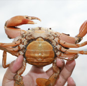 每逢炎夏,青母蟹會在產卵時棲身于淺灘河畔,在陽光的照射下,體內的蟹膏分解成金黃色的油脂,然后滲透到體內的各個部分,使得整只蟹晶瑩剔透、充滿黃油,因此被稱為黃油蟹。